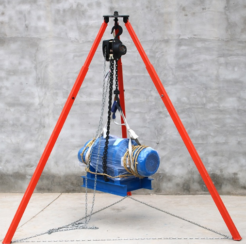 首先是起重三腳架,起重三腳架為固定點時多用低空作業或者是垂直地下作業的起重,維修甚至是救援工作,手拉葫蘆配合起重三腳架,具有很高的穩定性,在某些特殊時刻甚至可以代替手搖絞盤和救援三腳架使用,是很多起重場所不可多得的寶貝。